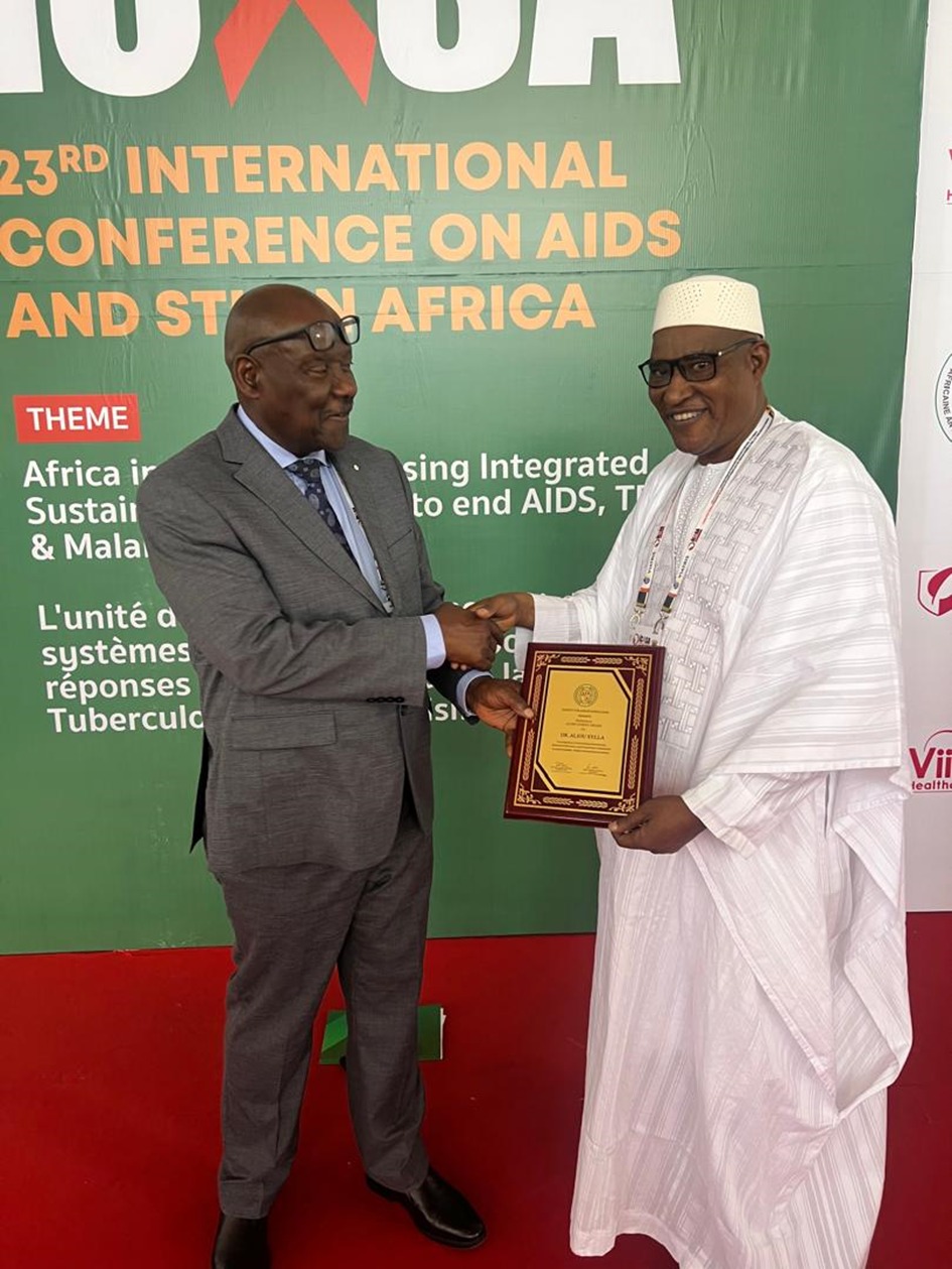 Accra, 2025 — En marge de la Conférence internationale sur le SIDA et les infections sexuellement transmissibles en Afrique (ICASA 2025), le Dr Aliou Sylla a été doublement distingué lors d’une cérémonie officielle organisée par la Société Africaine du SIDA (SAA).